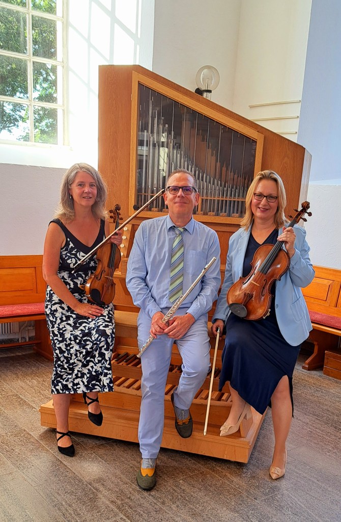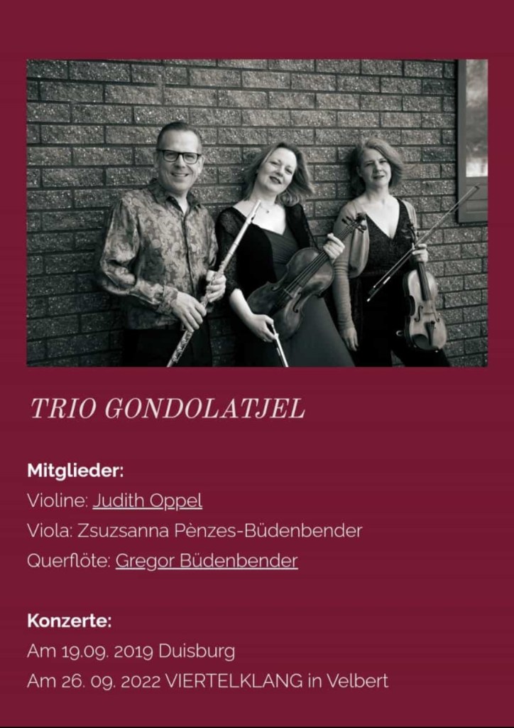 2021 Gründung TRIO GONDOLATJEL: Judith Oppel (Geige), Zsuzsanna Pénzes-Büdenbender (Viola), Gregor Büdenbender (Querflöte)