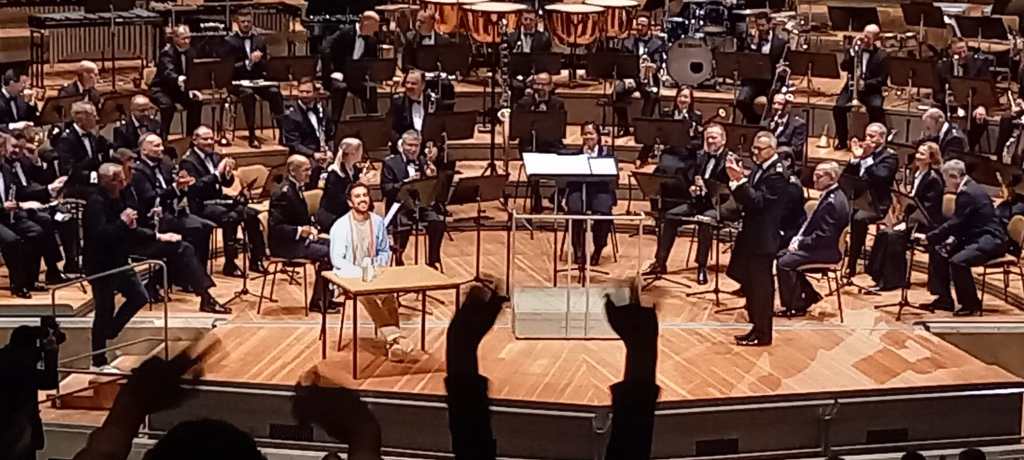 Mit dem Musikkorps der Bundeswehr in der Philharmonie Berlin, Moderator Johannes B. Kerner und Elyas M’Barek als Erzähler der musikalischen Geschichte von Emil und die Detektive, komponiert von Guido Rennert: