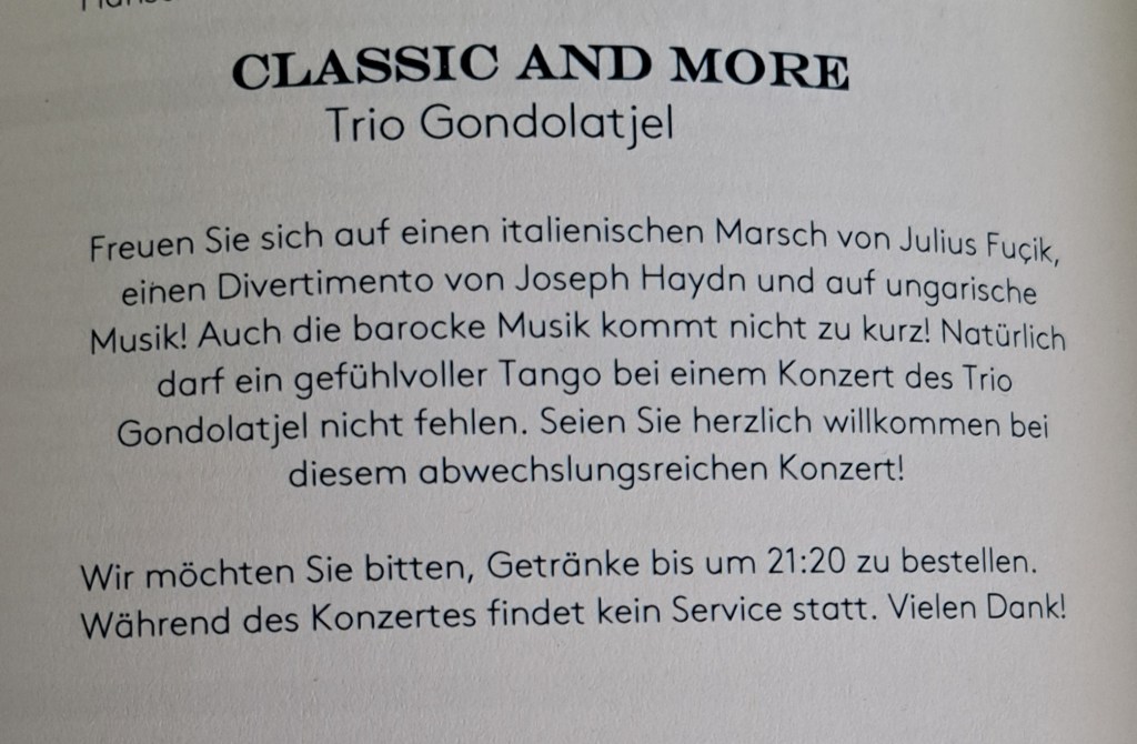 2024 Konzerte auf Kreuzfahrt mit Hapag Lloyd cruises und unserem Trio Gondolatjel.